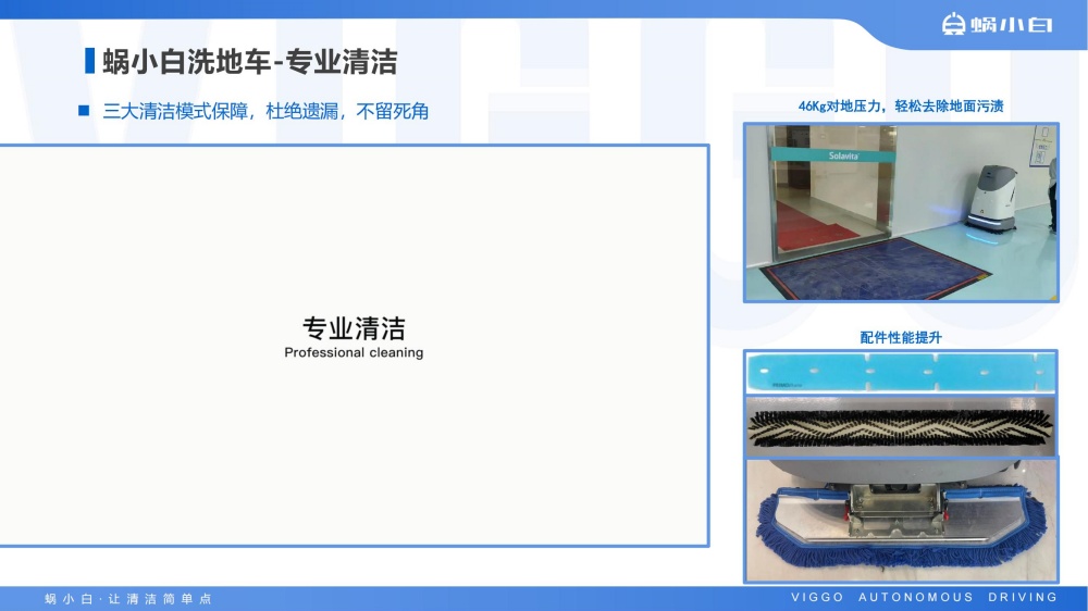 蜗小白SC50无人驾驶洗地机是智行者科技推出的一台洗扫推一体,一机多用的通用型智能清洁洗地车,具备精准环境感知、自动路径规划、自主避障、自动充电、自动加/排水、污水自动过滤等功能,可轻松应对水泥、大理石、PVC等各种室内中小型场景硬地面。