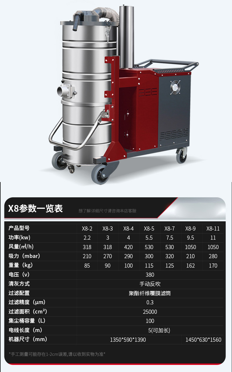 普陀坦洁380V 双桶手动反吹工业吸尘器X8系列